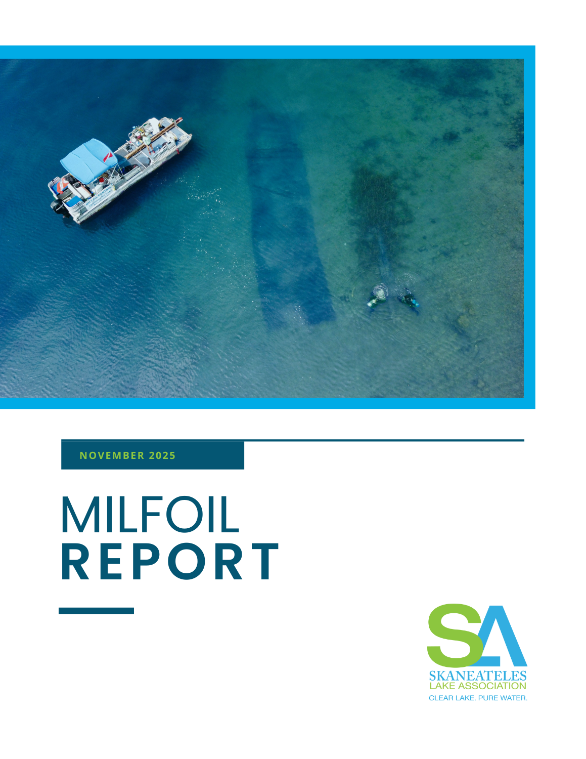 In 2006, SLA created a Milfoil Control Program that has reduced the species’ coverage on Skaneateles Lake to a level now requiring “maintenance” control. The SLA Milfoil Control program consists of a lake survey each fall to locate and document large growth patches of milfoil, and then the following spring those patches are covered with benthic mats constructed from geotextile material. Each mat is left on a milfoil patch for a minimum of 8 weeks to insure complete elimination, and then the mats are rotated. The Milfoil Control Program costs ~$200K annually and is funded by SLA membership and other sources, including $25K in Finger Lakes-Lake Ontario Watershed Protection Alliance (FLLOWPA) funds administered by Onondaga County.